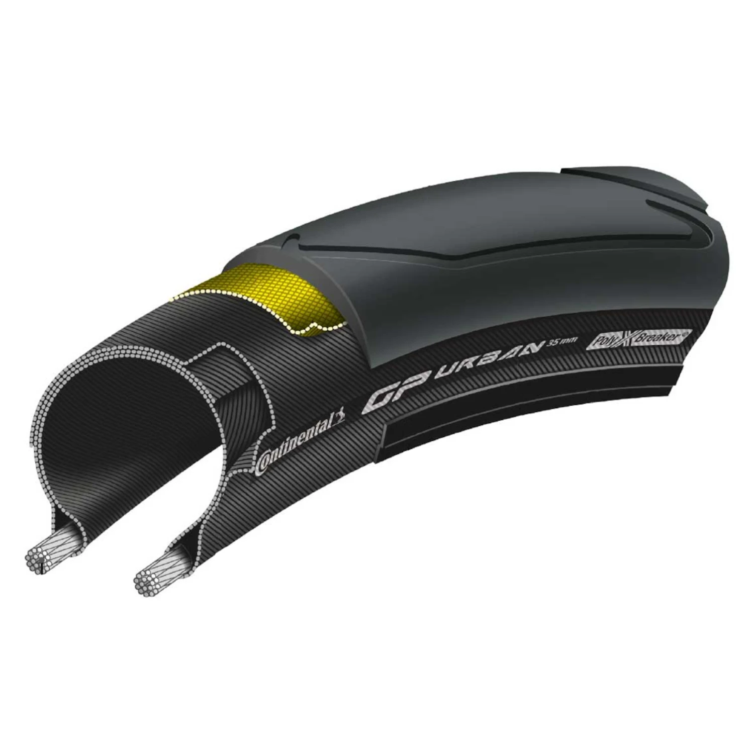 Le Continental Grand Prix Urban monté sur des vélos urbains et fixies une agilité sportive inconnue sur des routes asphaltées en ville. Pesé à 350 grammes et doté de technologies mûres pour la course, il permet une conduite fulgurante dans des virages et une accélération éclair. Au profil moderne et avec une technologie astucieuse dans la carcasse du pneu de route Grand Prix du même nom, le pneu à tringle souple pour la ville garantit un roulage extraordinaire. C’est surtout dû au Black Chili Compound de Continental dans la chape qui procure un grip élevé par temps secs et de pluie ainsi qu’une faible résistance au roulement. En plus, la section et le volume du pneu à tringle rigide léger confèrent plus de confort et une meilleure adaptabilité à l’utilisation urbaine. Autres points forts, c’est la protection de crevaisons PolyX fiable et la sécurité passive due aux bandes réfléchissantes noires qui soulignent l’élégance et la sobriété du GP Urban.