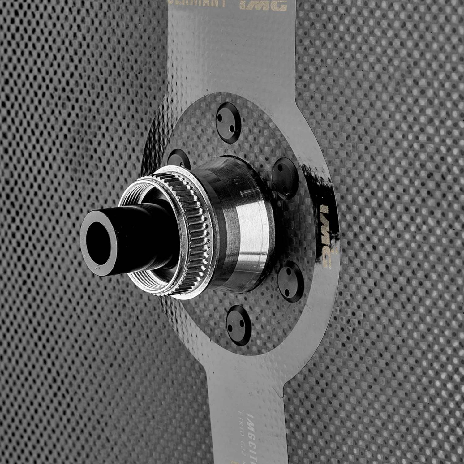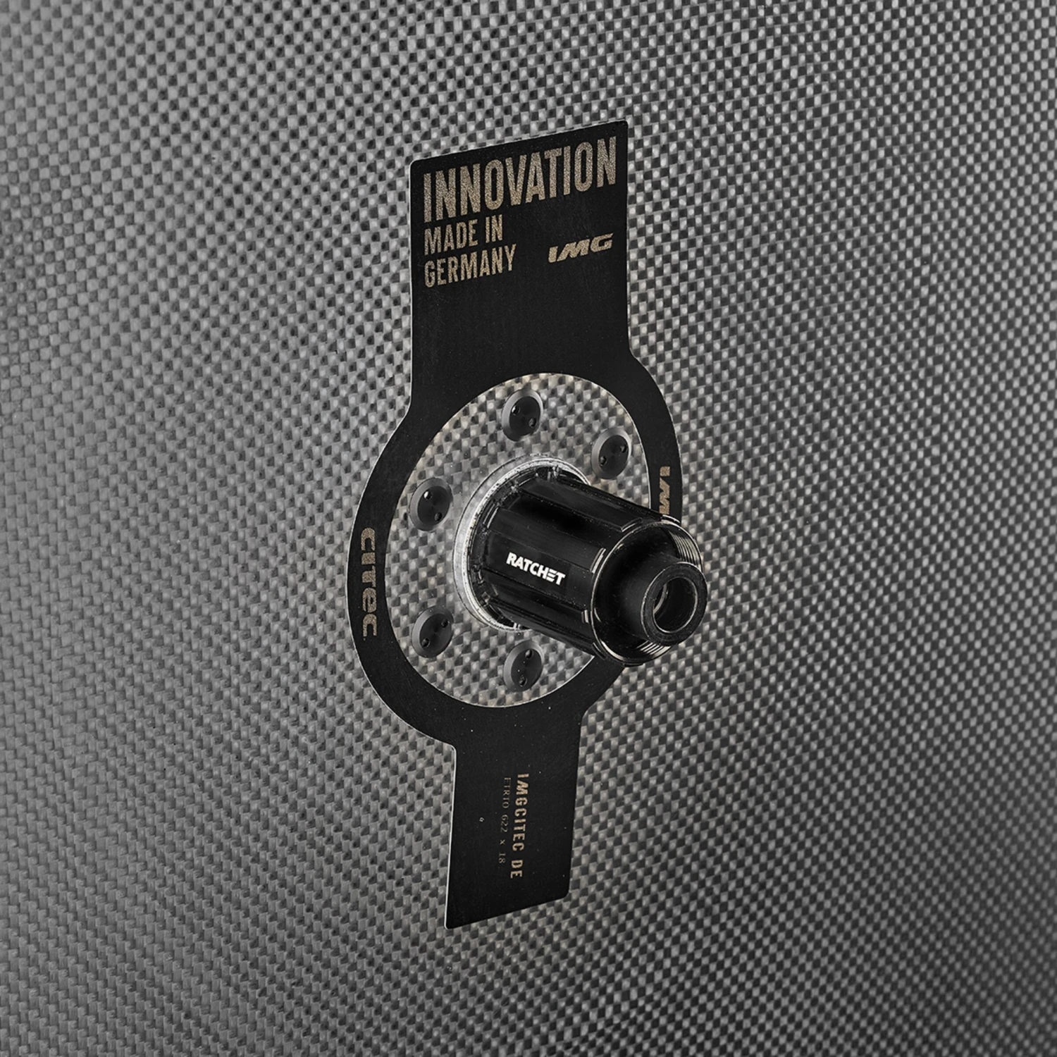 La roue arrière CITEC DISC 8000 DB de l’année 2022 est composée d’une jante ultra ferme en aluminium au profil trapézoïdal. L’ensemble de la jante et des surfaces latérales en carbone, mises en place sous tension, mène à une résistance minime à l’air et une concentricité et une rigidité latérale énormes. Bien évidemment, CITEC a également pensé à la compatibilité tubeless à nos jours déjà obligatoire et alors élargi la jante à 18 mm de distance intérieure pour la rendre compatible avec les pneus de route larges d’actualité. Le logement des disques de frein est conforme au standard Centerlock éprouvé et un très faible moment d’inertie mène à une motricité maximale.