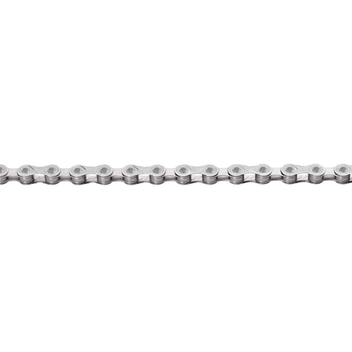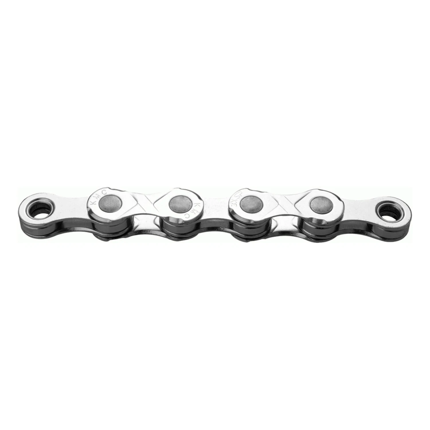 Les blocs moteurs modernes qui atteignent des couples très élevés, demandent beaucoup d’une chaîne pour vélos électriques. La chaîne de vélo KMC e10 à 10 vitesses pour des transmissions assistées par un moteur garantit une excellente résistance à la traction et à l’usure. Les rivets renforcés plus l’alliage d’acier trempé et le revêtement anticorrosion de nickel contribuent à une utilisation très longue durée. Pour les cotes exactes avec de faibles tolérances, la chaîne de vélo KMC n’a pas de penchant pour des torsions. Des lubrifiants de chaîne adhèrent bien mieux dessus et empêchent au mieux les particules sales de passer et de frotter. Grâce aux plaquettes biseautées et au design X-Bridge, vous profitez d’une fluidité, d’une précision et d’une fiabilité de changement en balades, au cyclotourisme et au vtt.