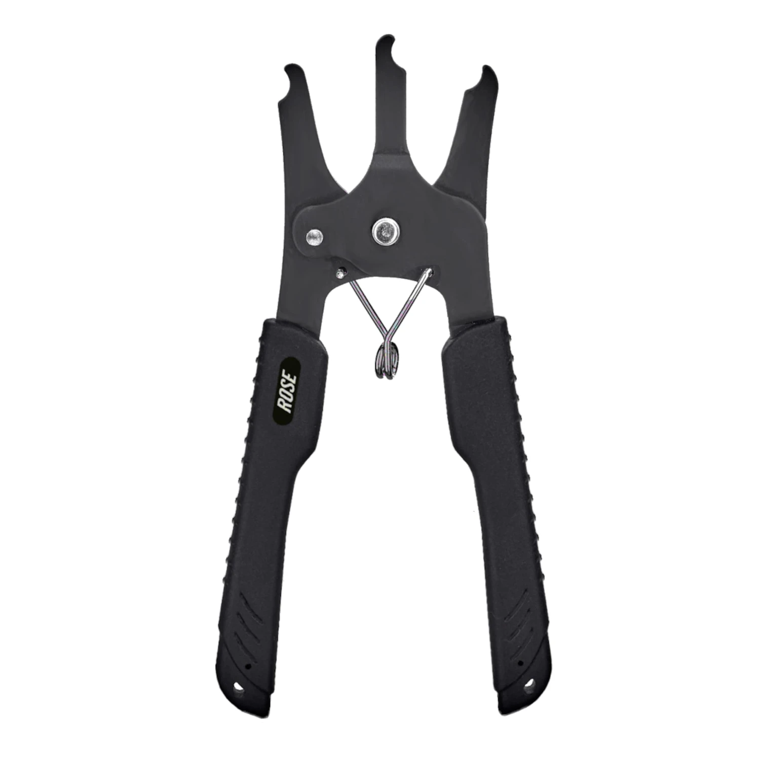 1 outil, 2 fonctions! Les porte-outils ovales de la pince 2 en 1 extrêmement compacte pour maillons attache-rapide de ROSE s’accrochent avec fiabilité dans les rouleaux des maillons de chaîne afin d’ouvrir et de fermer professionnellement les maillons attache-rapide courants. Il n’est pas nécessaire de changer de levier, car les pinces pour maillons fonctionnent dans les deux sens à la fois sous pression que sous tension. Aussi, la limitation intégrée de l’étalement de la pince est sophistiquée car elle permet un dosage optimal de la force de compression tout en maintenant l’outil à chaîne dans le format sans support de sécurité, de sorte qu’il puisse être logé dans un espace peu encombrant dans la boîte à outils. Passez-vous des doigts huileux et jouez la sécurité avec la pince pour maillons attache-rapide 2-en-1 de ROSE.
