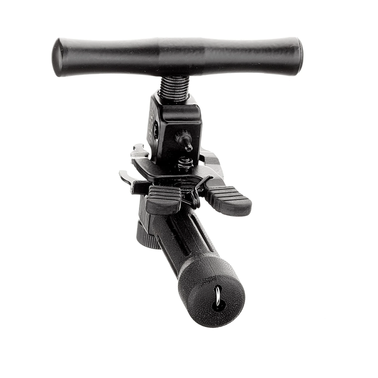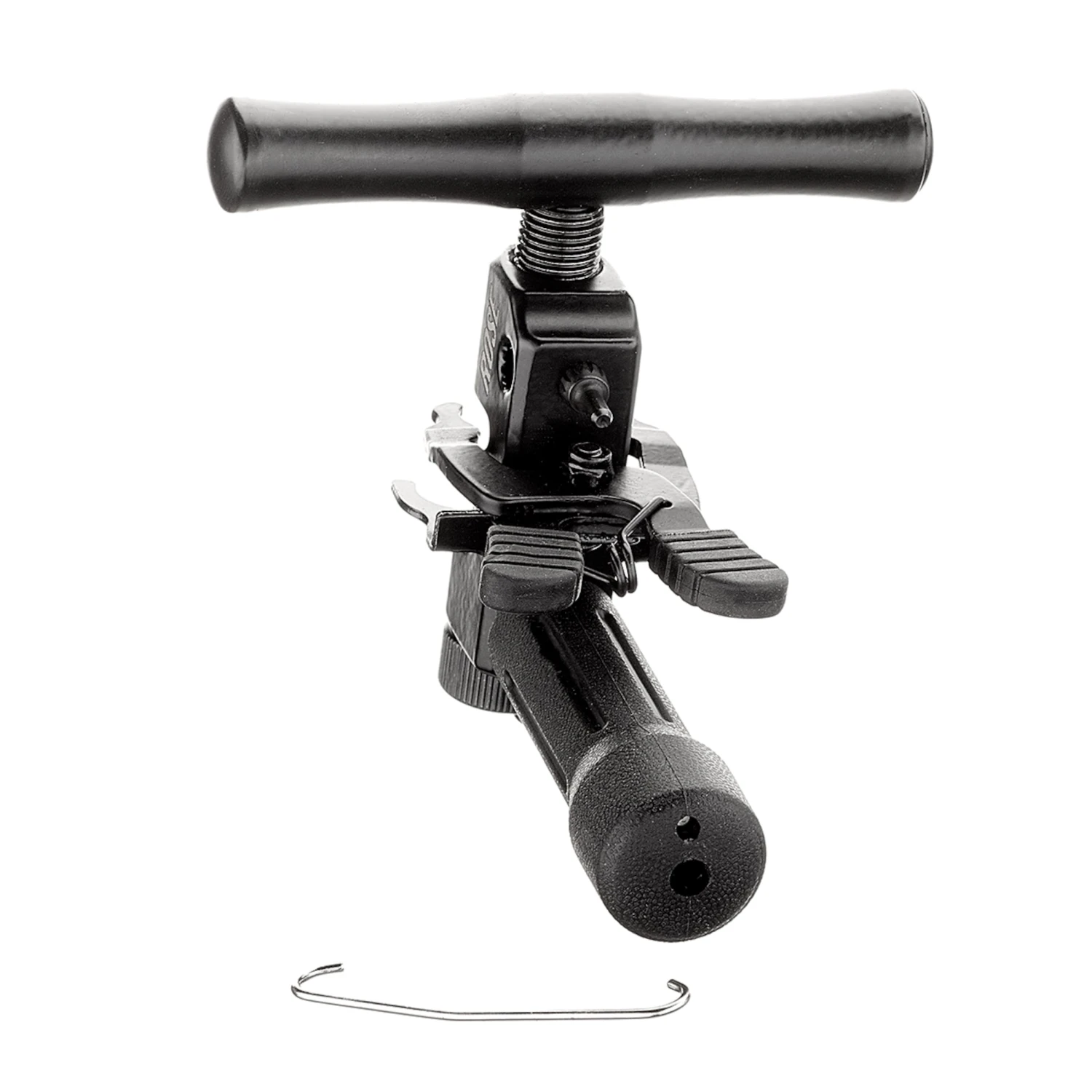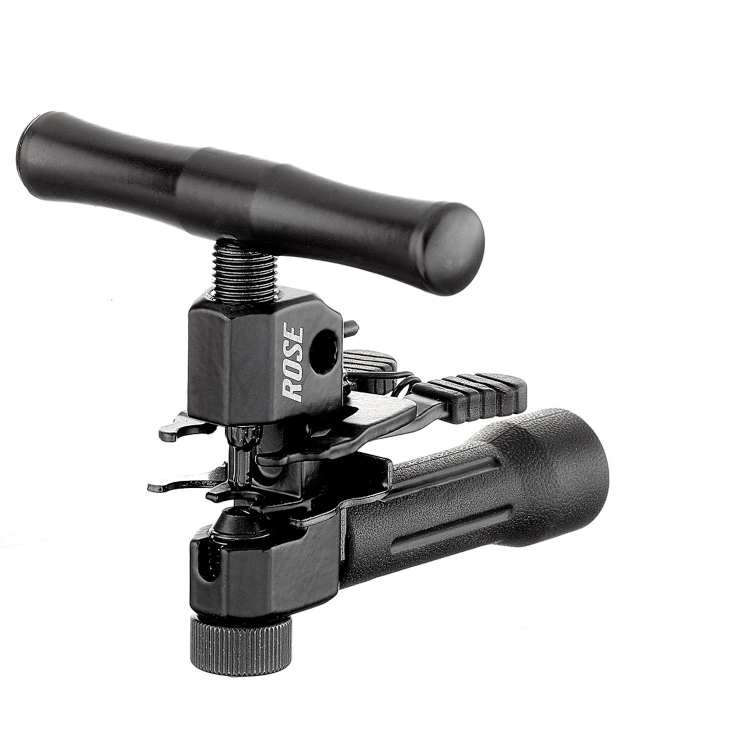 Le dérive-chaîne ROSE Pinpusher IV, très solide et fonctionnel, est fait d’acier à outils avec un manche gommé et un long levier d’aluminium. Un dispositif de fixation supplémentaire rattache les bouts de la chaîne, simplifie alors leur rivetage même sous tension.