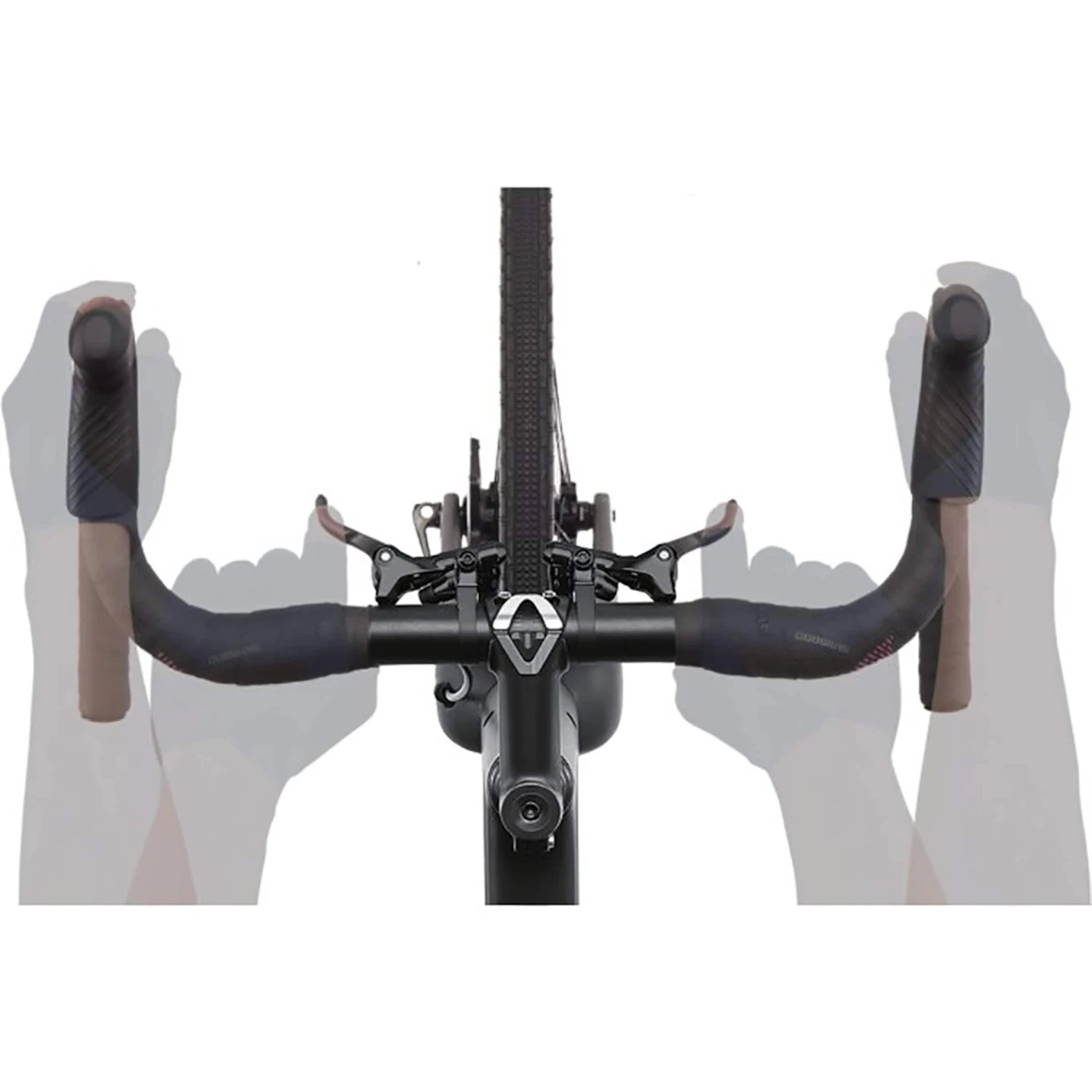 Le levier de frein à titre complémentaire du frein à disque hydraulique est intégré dans la conduite de frein qui elle lie la manette de frein et de dérailleur à l’étrier de frein, pour ainsi garantir un freinage fiable, et un accès plus facile en différentes positions. Surtout en position redressée quand on prend le guidon par le haut, vous parvenez directement aux freins par le biais des leviers de frein supplémentaires GRX BL-RX812 et pouvez bien plus rapidement ralentir si jamais il va être nécessaire.